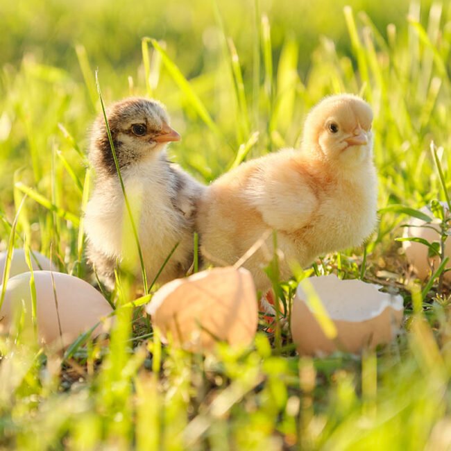Durante 6 meses cuidamos de cada gallina hasta que está lista para iniciar la puesta de huevos que darán lugar a pollitos de engorde.